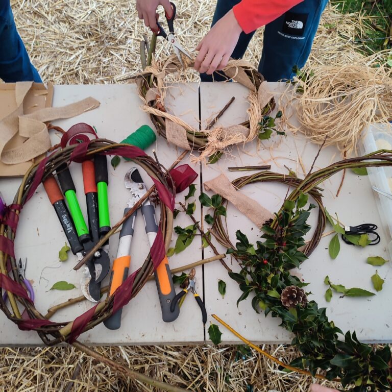 By the end, each person walked back down the towpath carrying a wreath full of character — some tidy and traditional, some wild and wonderful, all made from the land around us. More importantly, they left with that special Ty Banc feeling connected, welcomed, and part of something real.